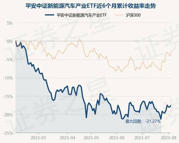 8月3日,平安中证新能源汽车产业ETF最新单位净值为2.0143元,累计净值为2.0143元,较前一交易日上涨0.59%。历史数据显示该基金近1个月下跌0.79%,近3个月下跌0.34%,近6个月下跌17.51%,近1年下跌29.06%。该基金近6个月的累计收益率走势如下图: