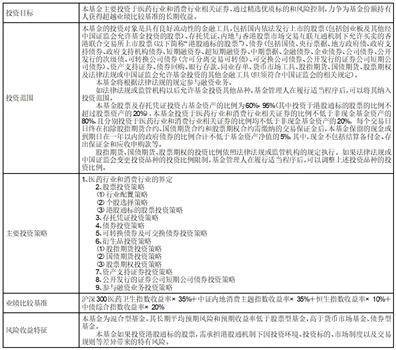 1、本基金的特定风险。(1)本基金作为混合型基金,具有对相关市场的系统性风险,不能完全规避市场下跌的风险和个券风险,在市场大幅上涨时也不能保证基金净值能够完全跟随或超越市场上涨幅度。 本基金属于主题投资混合型基金,股票部分重点投资医药行业和消费行业相关证券,因此在具体投资管理中可能面临目标主题股票所具有的特定风险,或者目标主题股票的业绩表现不一定领先于市场平均水平的风险。(2)资产支持证券投资风险;(3)股指期货投资风险;(4)股票期权投资风险;(5)国债期货投资风险;(6)港股市场投资风险;(7)存托凭证的投资风险;(8)参与融资交易风险;(9)基金合同终止的风险。