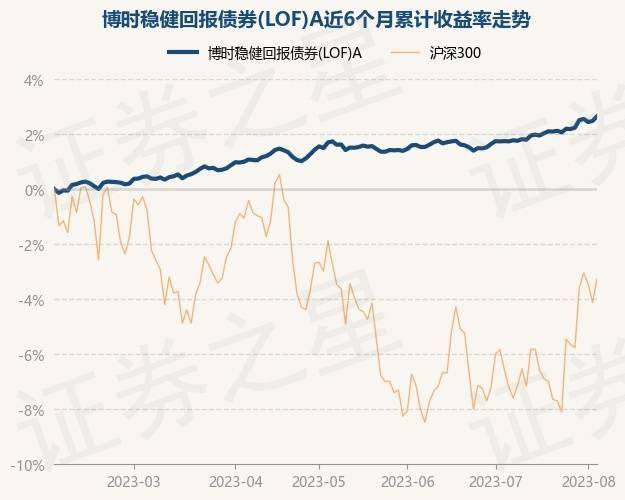 8月3日,博时稳健回报债券(LOF)A最新单位净值为1.9589元,累计净值为2.0339元,较前一交易日上涨0.16%。历史数据显示该基金近1个月上涨0.88%,近3个月上涨1.17%,近6个月上涨2.61%,近1年上涨1.93%。该基金近6个月的累计收益率走势如下图: