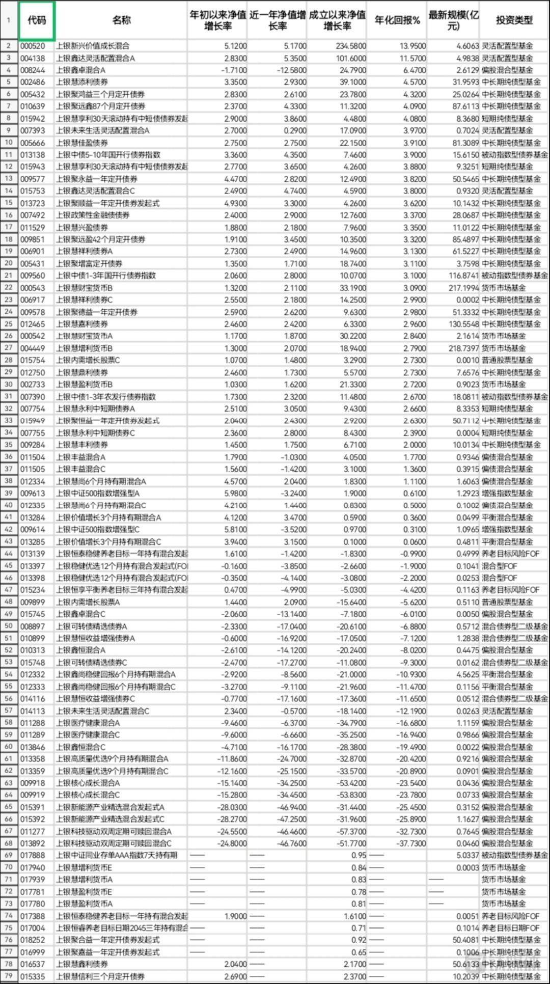 在上述成立满一年的67支基金中,年化收益率高于上银慧财宝货币B的基金只有20支,合计规模为640.49亿元。其中,年化收益率高于4%的基金只有7支,合计规模为165.17亿元;这7支基金里,上银新兴价值成长混合与上银鑫达灵活配置混合A是灵活配置型基金,上银鑫卓混合A是偏股混合型基金,成立时间均超过3年,如果是中途买入,持有收益一定会大打折扣。剩下的4支基金里,上银慧添利债券、上银聚鸿益三个月定开债券、上银聚远鑫87个月定开债券均为中长期纯债型基金,银慧享利30天滚动持有中短债债券发起式A为中短期纯债型基金,它们的年化回报率在4%到4.5%之间,合计规模为152.96亿元。此外,收益率在3.1%到3.97%之间的基金有13支,合计规模475.3亿元。