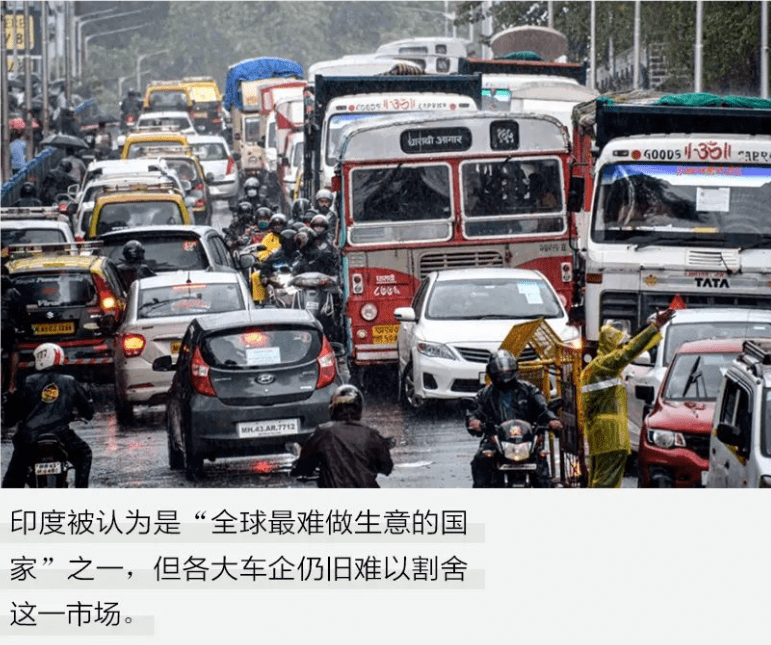 然而在供给端,印度却没有自主的汽车工业,占据了印度八成市场份额的印度塔塔集团还停留在组装阶段,刹车系统来自德国,芯片来自意法半导体,电池和电机则来自中国。因此,即便印度的营商环境欠佳,各大车企仍旧难以割舍印度市场。