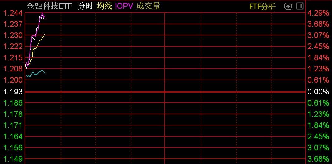 受重仓股上涨影响,金融科技ETF拉升逾4%。