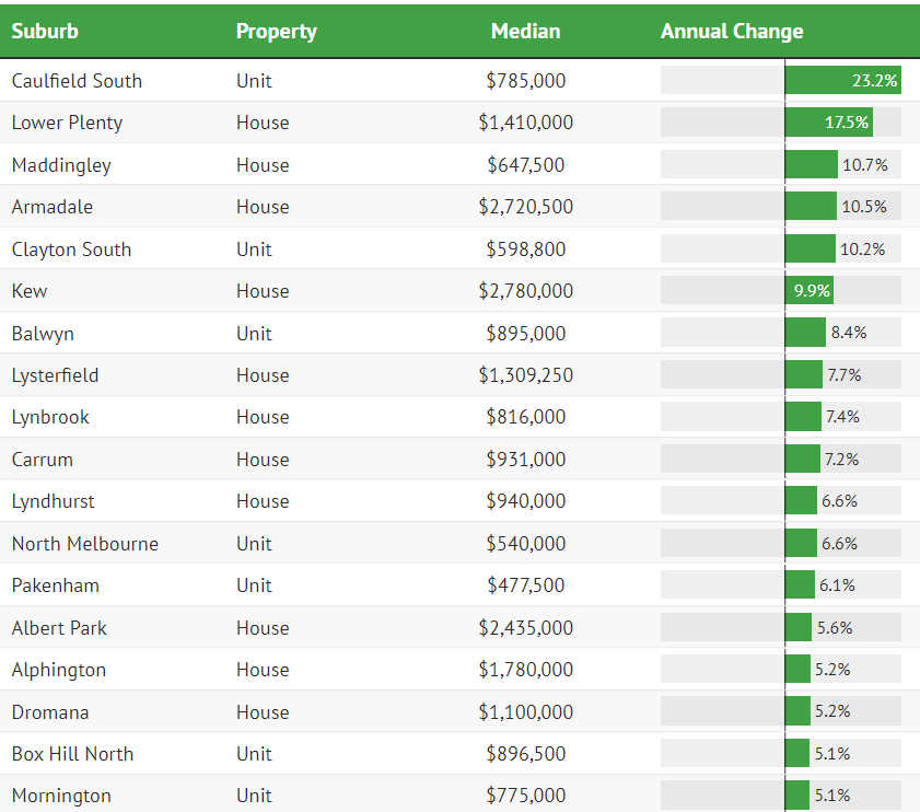 这三个郊区也是整个墨尔本仅有的独立屋 涨幅超过10%的区。