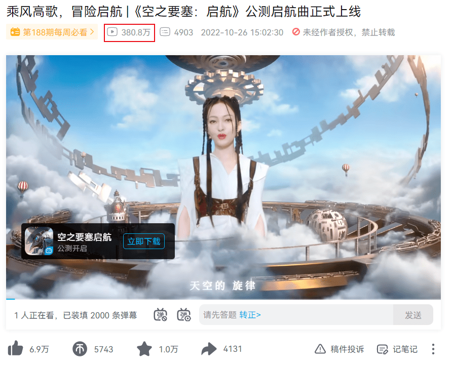 以音乐营销为例,在音乐营销的实验中,腾讯营销洞察(TMI)将张韶涵演唱的《空之要塞》主题曲MV作为内容营销素材,将介绍游戏世界观的买量广告作为测试对比素材。