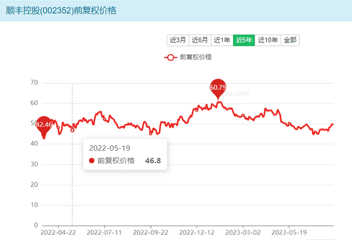 直到去年12月,顺丰控股的股价才重新站上57元/股。