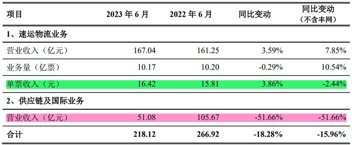 今年1-6月,顺丰控股的快递物流业务经营简报显示,其单票收入在15.13—17.06元之间,每月同比增速均为微降。
