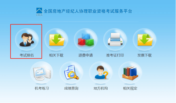 1.登录中国房地产经纪人官网(http://www.agents.org.cn),点击“考试服务平台”。(推荐使用谷歌、火狐、360极速浏览器或IE10及以上版本浏览器)