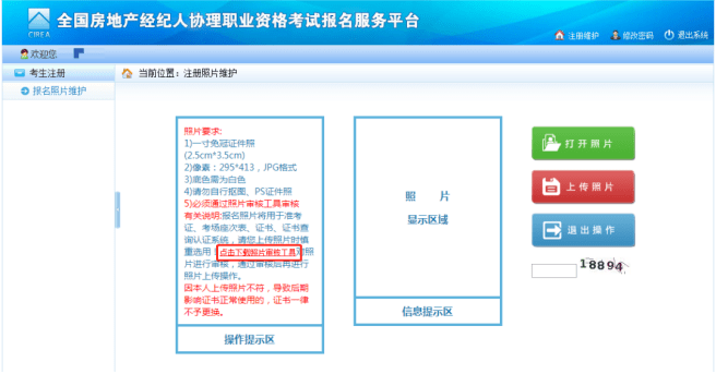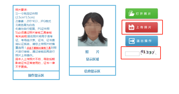 9.上传一寸彩色证件照片,需要下载照片审核工具。(照片文件为JPG或JPEG格式,像素为295px×413px,尺寸为1寸证件照(2.5cm×3.5cm),大小约为10KB,底色为白色,不能侧身或带公司LOGO)