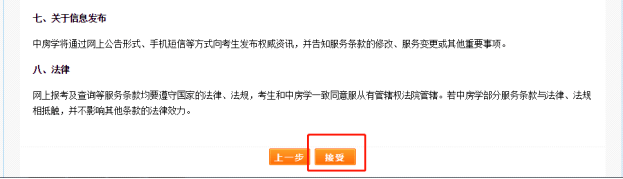 19.阅读报名人员诚信考试承诺书,点击“接受”。