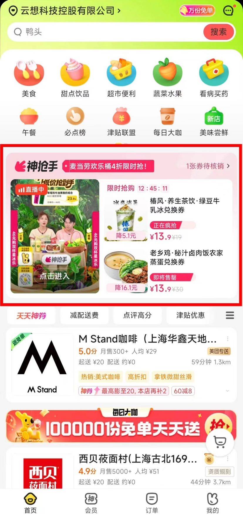 (消费者可通过美团外卖主页、线上搜索“神抢手”等入口进入活动会场)