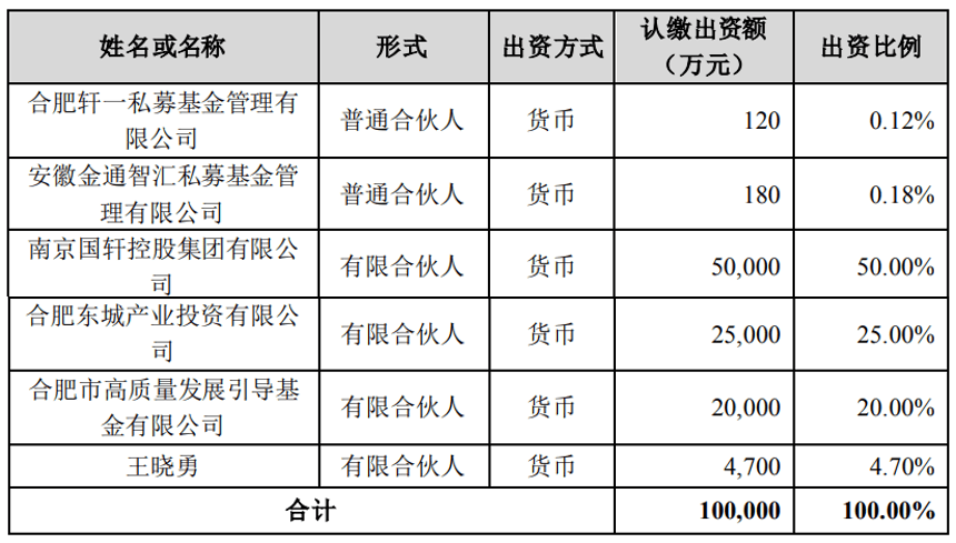 投资界-解码LP消息,7月28日,国轩高科发布公告,南京国轩控股集团有限公司作为有限合伙人认缴出资5亿元参与设立合肥国轩金通新材料产业基金合伙企业。