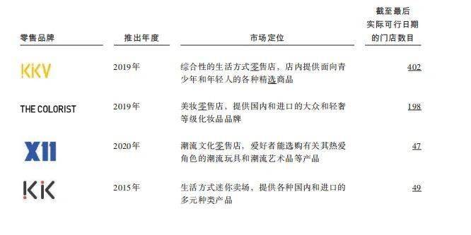 招股书显示,KKV是2019年推出的综合性生活方式零售店品牌,THE COLORIST是2019年推出的潮流美妆集合店品牌,X11是KK集团于2020年推出的潮流文化零售店品牌。