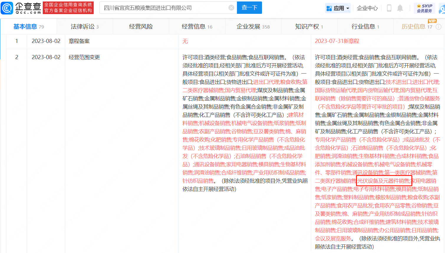 原标题:五粮液进出口公司经营范围新增光伏销售