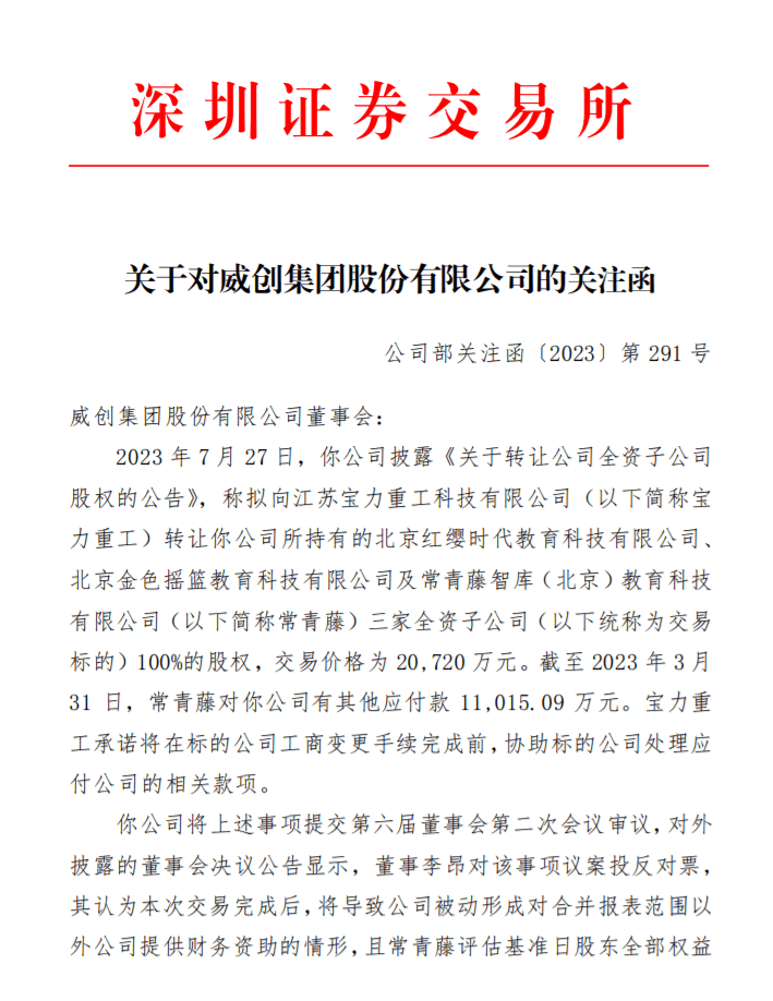 近日,威创股份(002308.SZ)的骚操作,不但引来了股民的质疑,就连深交所也下达关注函问询,而原因则是7月26日,威创股份的一则公告。