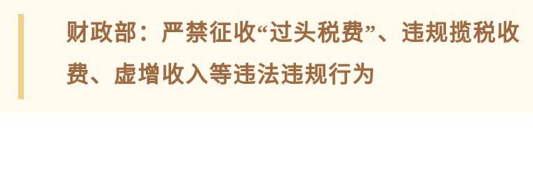 二是依法依规征税收费,严禁征收“过头税费”、违规揽税收费、虚增收入等违法违规行为。及时公布政府性基金和行政事业性收费目录,主动接受社会监督,在目录以外不得擅自增加收费项目、扩大征收范围、提高征收标准。加强涉企收费监督管理,监测各类涉企收费政策执行情况,坚决整治乱收费、乱罚款、乱摊派问题。