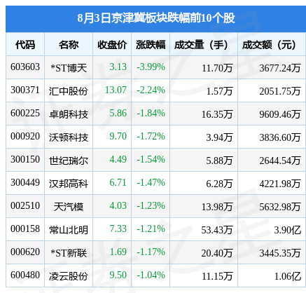 8月3日京津冀板块较上一交易日上涨0.54%,荣盛发展领涨。当日上证指数报收于3280.46,上涨0.58%。深证成指报收于11163.42,上涨0.53%。京津冀板块个股涨跌见下表:
