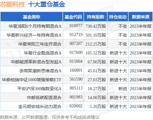 重仓芯能科技的前十大公募基金请见下表: