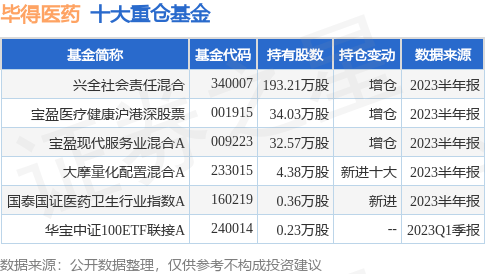 重仓毕得医药的公募基金请见下表: