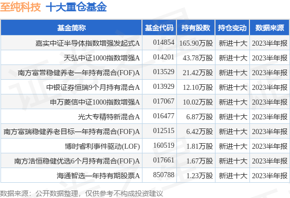 根据2023半年报公募基金重仓股数据,重仓该股的公募基金共11家,其中持有数量最多的公募基金为嘉实中证半导体指数增强发起式A。嘉实中证半导体指数增强发起式A目前规模为2.01亿元,最新净值1.1381(8月3日),较上一交易日下跌0.09%,近一年下跌8.56%。该公募基金现任基金经理为刘斌。刘斌在任的基金产品包括:嘉实量化精选股票,管理时间为2015年12月7日至今,期间收益率为79.17%;嘉实沪深300指数研究增强A,管理时间为2021年3月27日至今,期间收益率为-22.68%;嘉实低碳精选混合发起式A,管理时间为2022年12月13日至今,期间收益率为-18.14%。