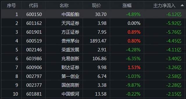 今日主力资金净流出排名前10只股: