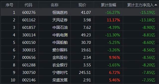 一周主力资金净流出排名前10只股: