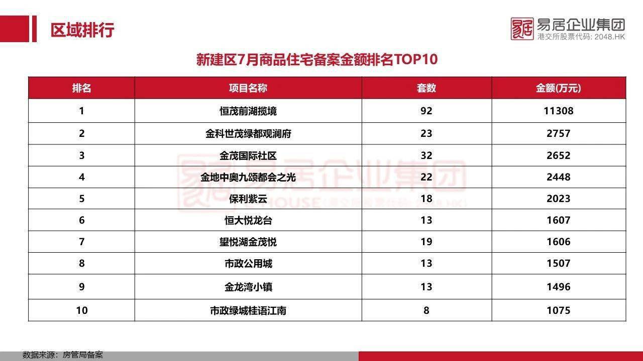 7月新建区新房住宅备案TOP10
