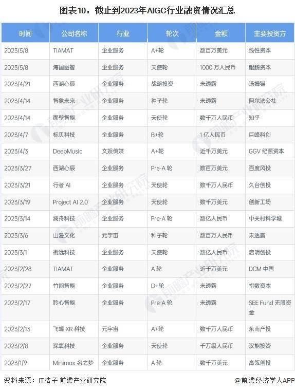截止2023年4月,AIGC赛道目前在国外已出现了7家独角兽。在我国,超参数和小冰公司已明确成为独角兽公司,Minimax据传估值过10亿美元,光年之外则宣布下一轮融资已被认购2.3亿美元。目前,最受头部资本关注的机构均与底层大模型相关或与AI领军人物下场相关(如王慧文光年之外、李志飞、周伯文、王小川等)。
