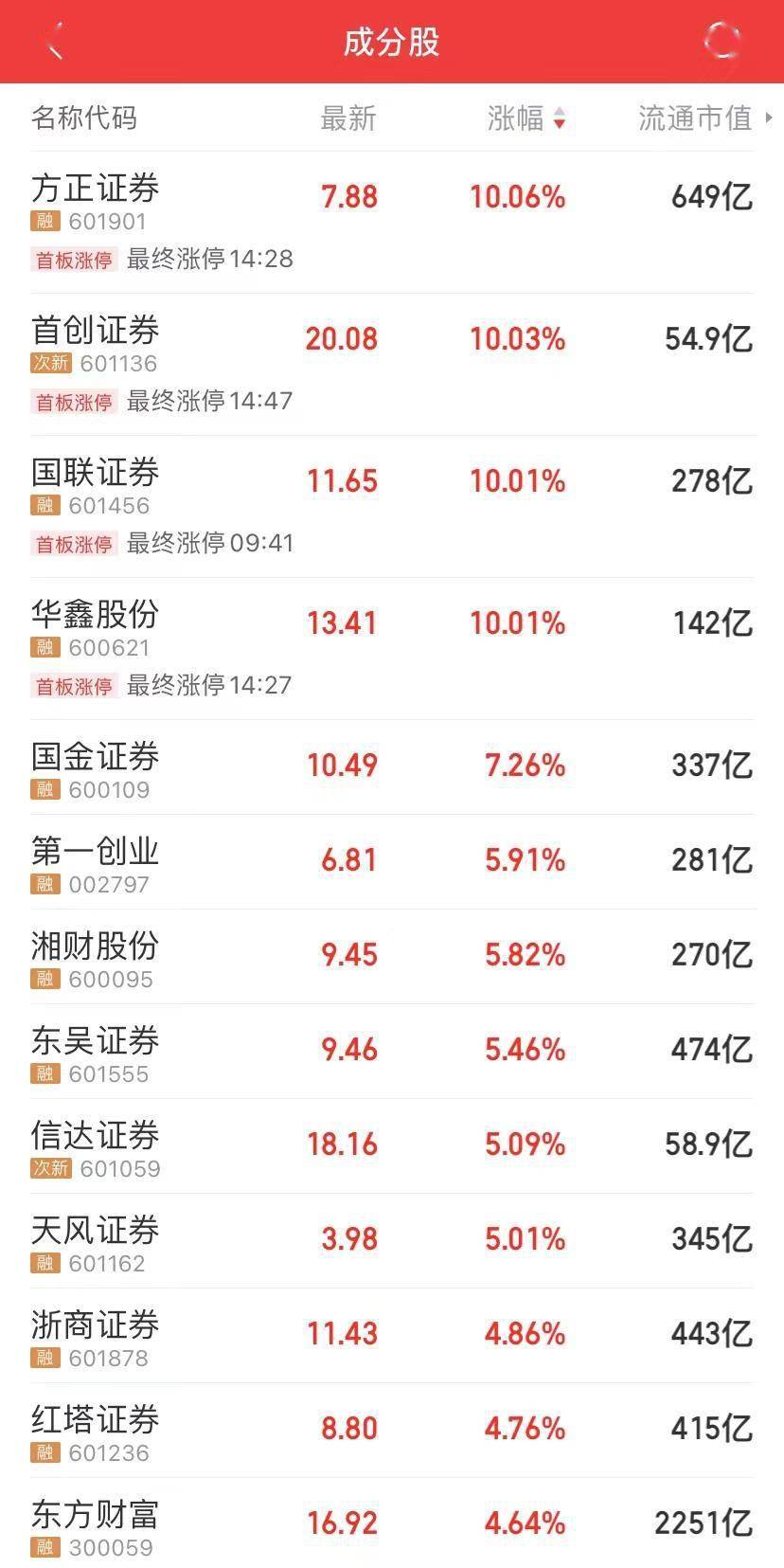 8月3日A股收盘,证券板块爆发,多只股票大涨。方正证券、首创证券、国联证券、华鑫证券涨停,国金证券涨7.26%,东吴证券、信达证券、天风证券涨超5%。