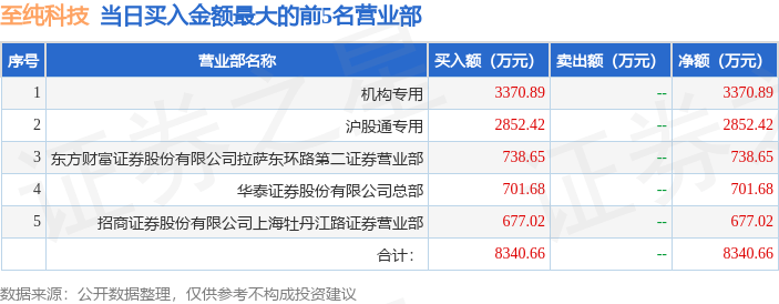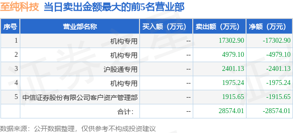 沪深交易所2023年8月4日公布的交易公开信息显示,至纯科技(603690)因有价格涨跌幅限制的日收盘价格跌幅偏离值达到7%的前五只证券登上龙虎榜。此次是近5个交易日内第1次上榜。
