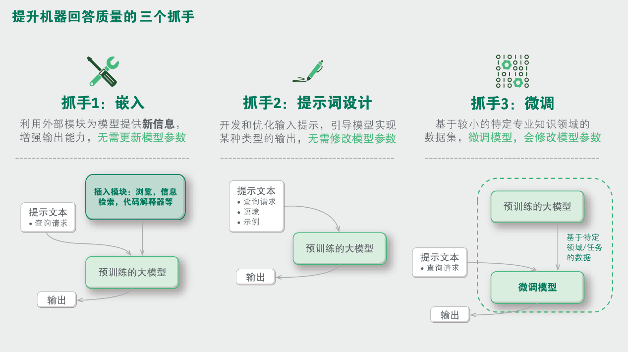 银行业具备由点及面推进生成式AI应用的三大条件,即扎实的数字化基础、完备的技术能力和多元丰富的数据。在推进技术落地过程中,有四大举措需予以重点关注:第一,在探索初期,优选生成式AI应用场景,平衡收益和风险,与传统AI充分结合;第二,在具体应用过程中,巧用方法,利用嵌入、提示词设计、微调三大抓手,让AI生成的答案更专业、实事求是;第三,在生成式技术能力体系建设上,夯实技术基础,合理部署、多维选型、全栈升级;第四,在重塑体系规模化应用过程中,遵循10/20/70原则,即10%是模型,20%是整体IT能力升级,70%是业务与组织的转型,而后两个因素更为关键。