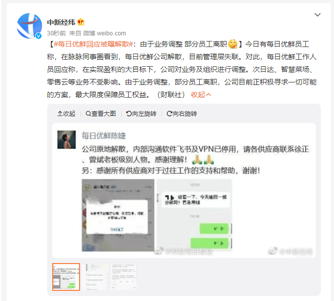 在关停极速达业务的第二天,每日优鲜以线上会议的形式开启内部裁员,涉及极速达、智慧菜场、零售云等多条业务线。网上一度传出“每日优鲜宣布原地解散”等消息。