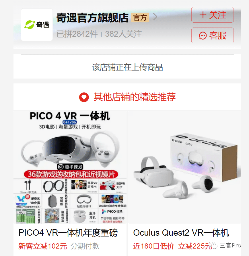 笔者在淘宝天猫京东等电商平台上搜索,确实没找到奇遇(梦想绽放的VR产品品牌)的店铺。但在奇遇官网,仍有京东、天猫和拼多多购买渠道的链接。