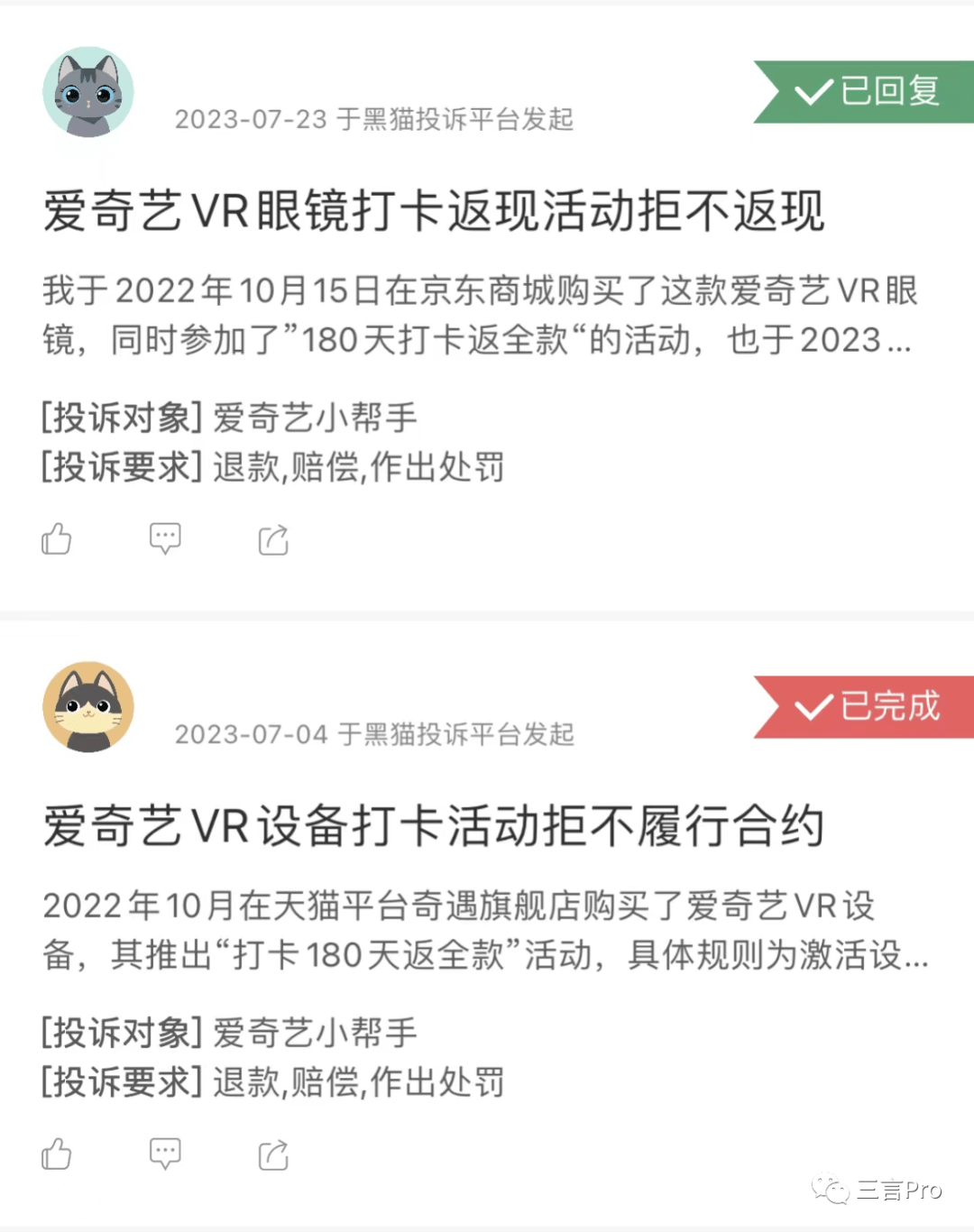 奇遇VR被投诉超700条