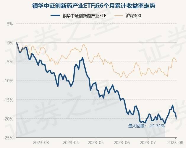 8月2日,银华中证创新药产业ETF最新单位净值为0.8222元,累计净值为0.8222元,较前一交易日下跌1.82%。历史数据显示该基金近1个月上涨0.15%,近3个月下跌10.45%,近6个月下跌20.1%,近1年下跌13.73%。该基金近6个月的累计收益率走势如下图: