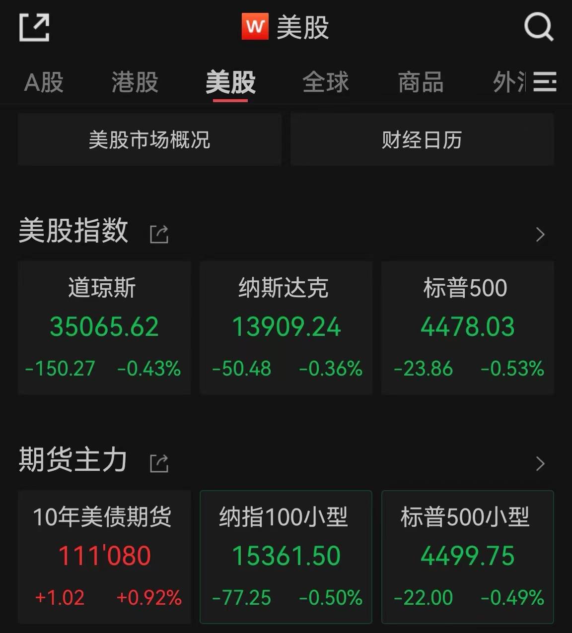 截至收盘,道指跌0.43%报35065.62点,标普500指数跌0.53%报4478.03点,纳指跌0.36%报13909.24点。本周,道指跌1.11%,标普500指数跌2.27%,纳指跌2.85%。