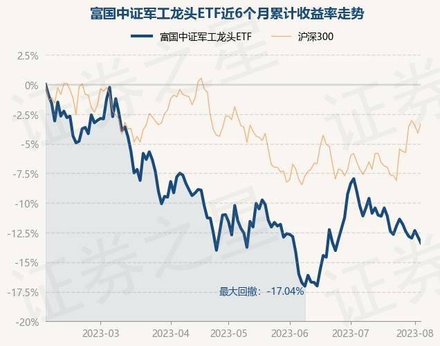 8月4日,富国中证军工龙头ETF最新单位净值为0.6708元,累计净值为1.3416元,较前一交易日上涨0.28%。历史数据显示该基金近1个月下跌5.64%,近3个月下跌1.74%,近6个月下跌13.13%,近1年下跌19.26%。该基金近6个月的累计收益率走势如下图:
