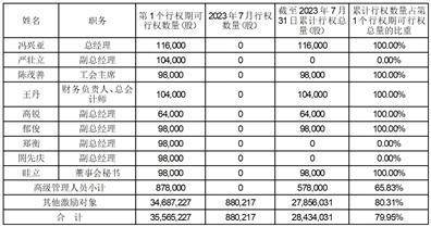 注明:由于自主行权方式,行权所得股票需在行权日(T日)后的第二个交易日(T+2)上市交易,以上行权数据为截至2023年7月31日收盘后已在中国证券登记结算有限公司上海分公司登记的数据。
