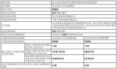 注:根据《易方达恒久添利1年定期开放债券型证券投资基金基金合同》规定,在符合有关基金分红条件的前提下,本基金每年收益分配次数最多为12次,每份基金份额每次分配比例不得低于收益分配基准日每份基金份额可供分配利润的80%。