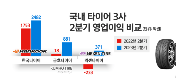 韩泰、锦湖和耐克森,营业利润分别为2482亿韩元、881亿韩元和371亿韩元。