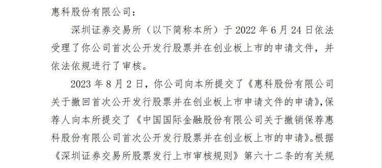 深圳本地企业、被称为“面板三哥”的惠科股份有限公司(以下简称惠科股份)的IPO申请“撤单”了!深交所今日公告称,2023年8月2日,惠科股份及其保荐人申请撤回发行上市申请文件。根据有关规定,深交所决定终止对惠科股份首次公开发行股票并在创业板上市的审核。