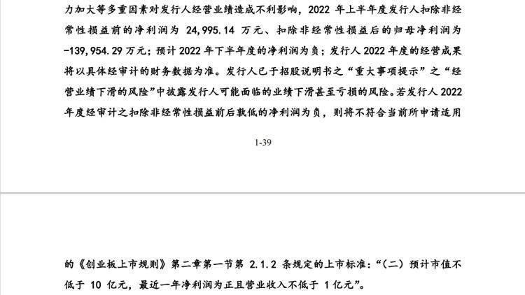 回复函称,惠科股份已于招股说明书之“重大事项提示”之“经营业绩下滑的风险”中披露发行人可能面临的业绩下滑甚至亏损的风险。惠科股份并坦承,若公司2022年度经审计之扣除非经常性损益前后孰低的净利润为负,则将不符合当前所申请适用的《创业板上市规则》第二章第一节第2.1.2条规定的上市标准:“(二)预计市值不低于10亿元,最近一年净利润为正且营业收入不低于1亿元”。