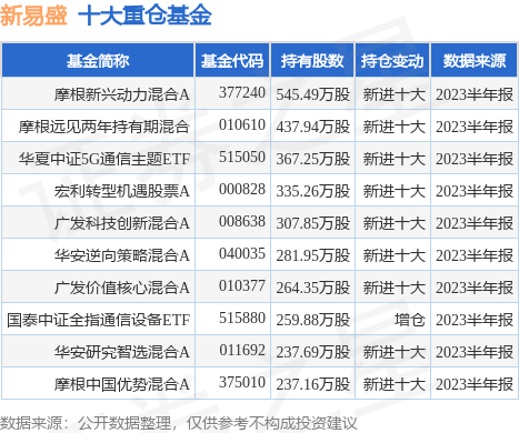 重仓新易盛的前十大公募基金请见下表: