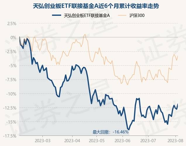 8月4日,天弘创业板ETF联接基金A最新单位净值为0.9168元,累计净值为0.9168元,较前一交易日上涨0.9%。历史数据显示该基金近1个月上涨1.33%,近3个月下跌0.91%,近6个月下跌11.09%,近1年下跌12.97%。该基金近6个月的累计收益率走势如下图: