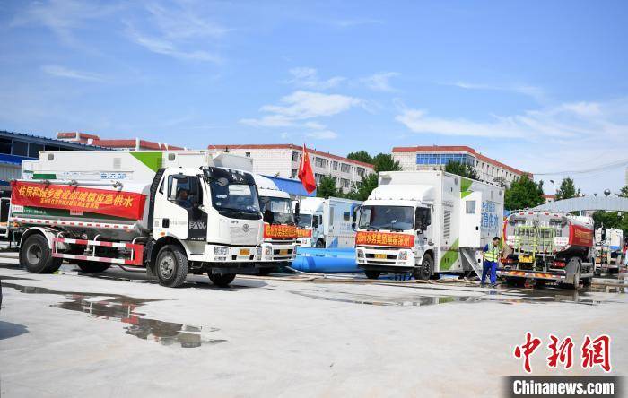 8月5日,应急制水车在涿州市一个临时制水供水站点作业。中新社记者 翟羽佳 摄