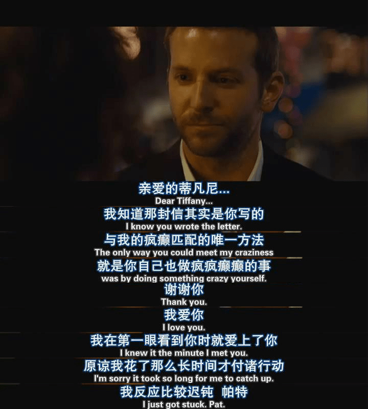 布莱德利·库珀扮演的男主角和詹妮弗·劳伦斯扮演的女主角,各自拥有一个过得一团糟的人生,有大大小小的精神症状,最后两个一起发疯的神经病走到了一起。