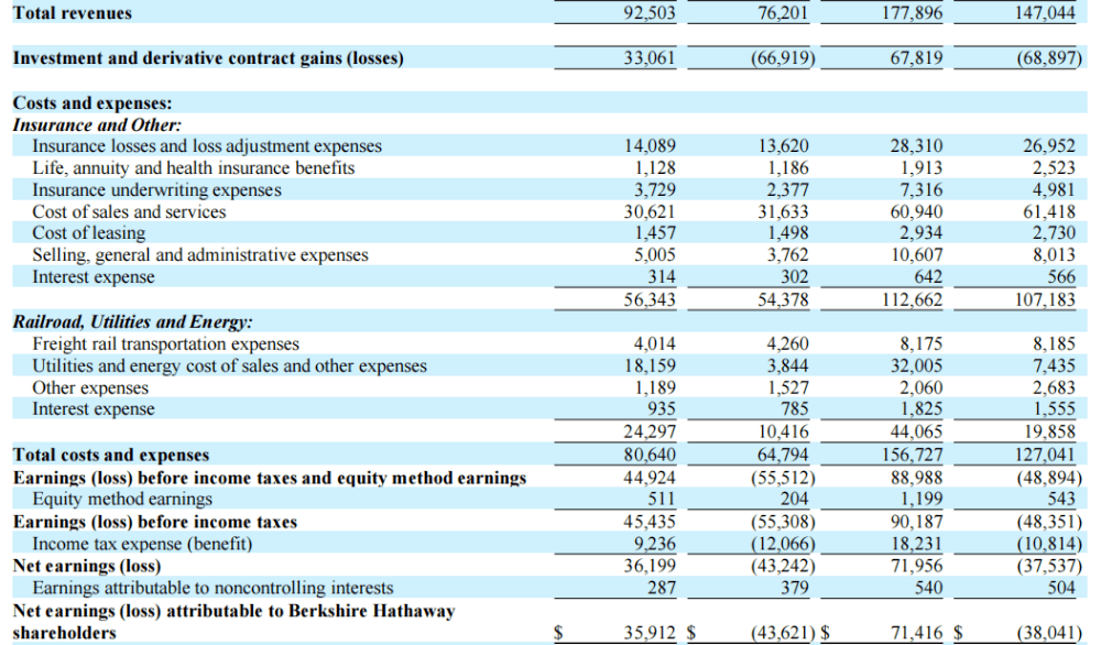 此外,伯克希尔今年上半年的整体投资收益,还包括与收购美国最大的卡车休息站Pilot Travel Centers额外41.4%权益相关的约24亿美元净重估收益。