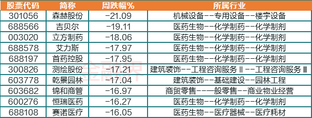 本周十大熊股(备注:不含ST股及上市天数小于30天的股票)公司