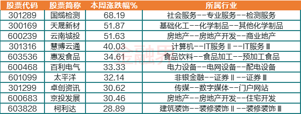 本周十大牛股(备:不含ST股及上市天数小于30天的股票)