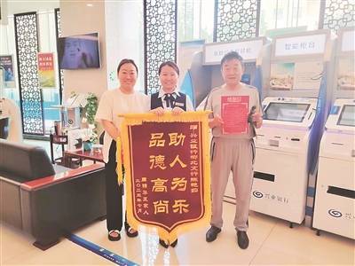 本报太原讯 近日,一位大爷手捧一面写有“助人为乐、品德高尚”的锦旗和一封感谢信来到兴业银行太原北城支行,寻找做好事不留名的陈艳茹,感谢她对其老伴的帮助。