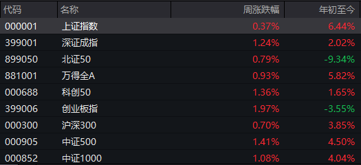 本周累计上涨的个股有2713只,下跌的有2429只,相较前一周而言比较均衡。